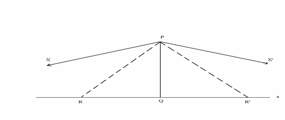 Teorema: per ogni retta s e per ogni punto P esterno ad s, sia Q il piede della perpendicolare condotta da P a s. Allora ci sono due sole semirette PX e PX', da parti opposte rispetto a PQ, che non incontrano s e hanno la proprietà che una semiretta uscente da P incontra s se e solo se si trova tra PX e PX'. Inoltre queste semirette limite sono disposte simmetricamente rispetto s PQ nel senso che XPQ X'PQ