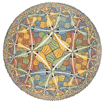 Maurits Cornelis Escher (17 giugno 1898 - 27 marzo 1972) fu un artista olandese, conosciuto principalmente per le sue incisioni su legno, litografie e mezzetinte che tendono a presentare costruzioni impossibili, esplorazioni dell'infinito e motivi a geometrie interconnesse che cambiano gradualmente in forme completamente differenti. Nella produzione di Escher gli anni che vanno dal 1956 al 1970 individuano quello che possiamo definire: Periodo dell'Infinito. L'opera migliore di questo periodo è "Limite del cerchio III" (1959), che sembra sia il frutto dell'ammirazione dell'artista per una illustrazione di un libro di H.S.M. Coxeter. Quest'immagine è una rappresentazione di uno spazio iperbolico il cui modello è dovuto al matematico francese Poincarè. Diamo un'idea dello spazio che Escher ha voluto rappresentare. Poniamoci al centro del disegno e supponiamo di voler camminare fino al bordo di esso. Mentre camminiamo ci restringiamo sempre di più, proprio come accade ai pesci della figura. Per raggiungere il bordo quindi dovremmo percorrere una distanza che ci sembrerà infinita, ma essendo immersi in questo spazio non ci parrà subito ovvio che ci sia qualcosa di inusuale.