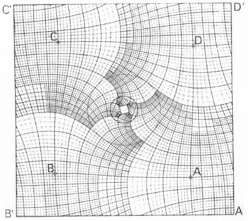 La griglia originale era quella delimitata dai punti ABCD. Successivamente venne ingrandita, per permettere l'inserimento di un maggior numero di dettagli e di particolari che , altrimenti, sarebbero stati tagliati fuori. I corrispondenti punti che delimitano la nuova griglia sono A'B'C'D'.