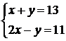 Dall'equazione così scritta si ricava che la y è uguale a 13-x, quindi nella seconda equazione al posto della y possiamo sostituire 13-x. La seconda equazione perciò diventa: