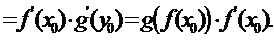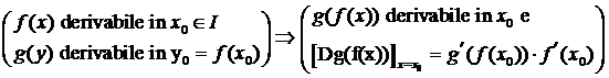 significa che la derivata della funzione composta g(f(x)) calcolata nel punto x è uguale al prodotto della derivata della componente esterna g(y) calcolata nel punto y=f(x) per la derivata della componente interna f(x) calcolata nel punto x.