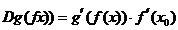 Ne consegue che, se la funzione composta g(f(x)) è derivabile in un intervallo, allora la derivata della funzione composta è uguale al prodotto della derivata di g rispetto ad f(x) (pensata come una variabile indipendente) per la derivata di rispetto ad x.
