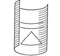 Torniamo a considerare per un momento la geometria euclidea. Immaginiamoci un foglio di carta enorme, che si estenda indefinitamente in tutte le direzioni. Questo foglio di carta è un'illustrazione fisica del piano matematico, il piano in cui valgono i teoremi della geometria euclidea. Supponiamo ora di modificare la forma di questo enorme piano di carta incurvandone un po' verso l'alto i lati destro e sinistro (fig. 3), in modo che esso formi una superficie curva, la quale continui nondimeno a estendersi indefinitamente in tutte le direzioni, come il piano originario. Una tale superficie è nota come superficie cilindrica. In seguito al mutamento di forma, la maggior parte delle linee rette del piano precedente diventano linee curve le quali, come le linee rette del piano, sono le traiettorie più brevi fra i punti che esse congiungono sulla superficie. Chiamiamo tali curve geodetiche. Due linee rette che erano parallele nel piano diventano geodetiche parallele, ossia geodetiche che non si incontrano nella superficie. I triangoli del piano originario diventano figure formate da archi di geodetiche sulla superficie. Chiameremo anche queste nuove figure 'triangoli." I cerchi del piano danno origine a figure che chiameremo "cerchi."