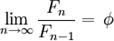 Il rapporto Fn / Fn-1 al tendere di n all'infinito tende al numero irrazionale φ. Quindi: