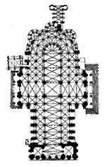 sovrastante sia la disposizione a raggiera delle cappelle, mentre le lunghe