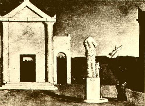Giorgio De Chirico essendo profondamente legato alla cultura classica ha ben presente la piazza del foro romano e dell'agorà greca, si ispira a queste ultime ma le svuota completamente, ne toglie il volto umano, è una visione nuova e deformata dell'ambiente posta in una ambiente illogico simbolo dell'età contemporanea piena di simboli da decifrare.