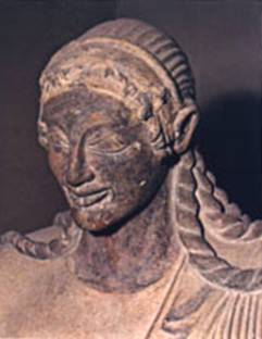 L'antica volontà di appesantire l'immagine, di darle corpo e materia reali diventa più ansiosa, si complica. La persona che viene rappresentata vivente, nell'atto di banchettare, è morta: quella che vediamo è un'immagine a cui non corrisponde più una cosa o persona reale. L'etrusco, industriale o mercante, che ha il senso concreto della vita pratica, si smarrisce davanti al vuoto della morte. Cerca di riempirlo con le immagini, le vuote forme di sé, delle cose del mondo; ma le medesime forme che si muovono e vivono nel contesto di relazioni infinite di cui è fatto il mondo, rimangono immobili e immutabili nello spazio vuoto dell'al di là. Tutto è veduto dal punto di vista del morto, in una prospettiva rovesciata, con una passione per la vita che non può più essere soddisfatta e che non ammette scelte: non v'è più il bello e il brutto, il buono e il cattivo, tutto è ugualmente pieno di significato. Le tare, i mali, le deformità sono pur sempre indizi di vita, segni concreti dell'esistere: oggetti di rimpianto, perfino, per colui cui sovrasta l'insopportabile minaccia di non essere più. Della persona si avrà la forma, non la struttura.
