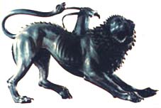 Poco dopo (V secolo) la Chimera d'Arezzo, uno dei massimi capolavori dell'antica arte del bronzo, intensifica i motivi della stilizzazione ionica fino a rovesciare il significato, a tradurli in fattori di concisione e tensione espressiva.