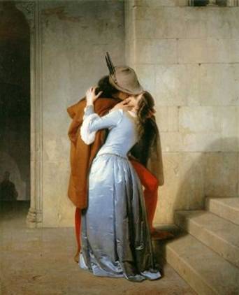 e lo rende più concreto attraverso il racconto di Francesca da Rimini, figlia di Guido da Polenta (signore di Ravenna) e costretta a sposare Gianciotto Malatesta (signore di Rimini) che era zoppo e deforme; innamoratasi di Paolo, fratello di Gianciotto, fu uccisa dal marito che la sorprese con l'amante.
