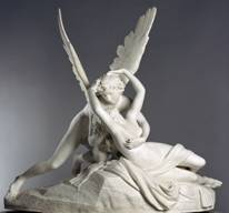 Per lo stesso motivo, nella scultura raffigurante i due amanti, Canova pone tra le mani di Eros quest'elegante insetto le cui ali richiamano quelle (in questa statua assenti) del dio Amore.