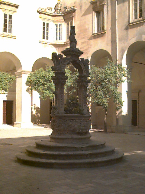Ciò che colpisce e affascina è proprio la straordinaria ricchezza dei dettagli, la precisione e la fantasia del decoro, onnipresente: all'interno del palazzo ho potuto visitare solo il porticato interno, ove si trova il famoso pozzo. Questo è un tripudio fitto e leggero di fiori e frutti in pietra leccese, mentre il manico è animato da delfini e puttini, e si conclude in sommità con una slanciata statua.