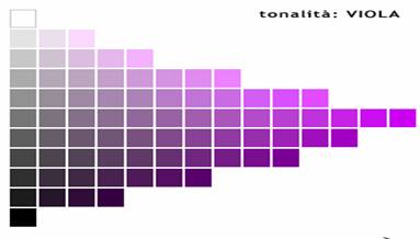 Per tinta si intende il colore vero e proprio. La mescolanza di una tinta al suo massimo grado di purezza con quantità variabili di bianco, di nero o di grigio dà origine a una serie di variazioni cromatiche . queste sono definite gradazioni tonali (fig. 6).