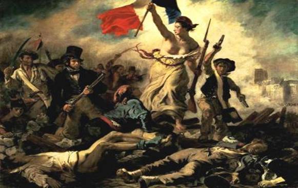 Fa la storia "La libertà che guida il popolo" di Delacroix, simboleggiata come donna giovane, bella e forte che, a seno nudo, guida con slancio il popolo sulle barricate: si tratta di una figura idealizzata, emblema ottimale dello spirito femminile che nella società del tempo non gode ancora di questa affermazione.