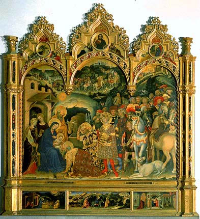 A Firenze, nel 1423, Gentile da Fabriano dipinge la sua opera più famosa, l'Adorazione dei Magi, commissionatagli da Palla Strozzi, l'uomo in quel momento più ricco di Firenze, quasi come una mostra del lusso suo e dell'intera città, in gara con le grandi corti dell'Italia settentrionale o straniere.