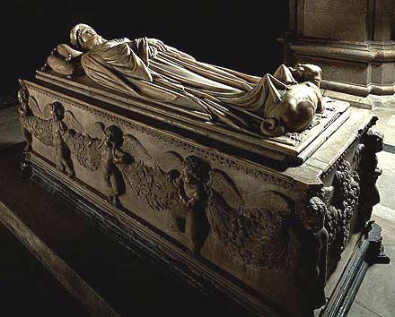 Ilaria del carretto, moglie di Paolo Guinigi, signore di Lucca, era morta in giovane età nel 1405. il marito le fece erigere il monumento funebre da Jacopo della Quercia. Caduta la signoria dei Guinigi, morto Paolo in carcere a Pavia prigioniero di Francesco Sforza, il sepolcro fu disgraziatamente scomposto e ricostituito (non sappiamo se esattamente) soltanto un secolo dopo.