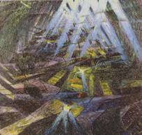 staticità. Per mezzo di linee oblique, verticali, ondeggianti e concentriche,
