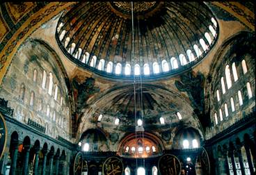 Dopo la conquista di Costantinopoli da parte dei Turchi (1453), l'Hagia Sophia fu trasformata in moschea e vi furono aggiunti i minareti, che sono ancora agli angoli. Furono allo stesso tempo tolti l'altare e le immagini sacre, e i mosaici parietali furono intonacati.