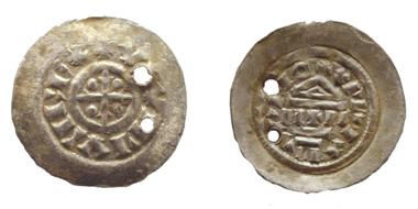 Una caratteristica peculiare delle monete carolinge rinvenute in Ungheria è data dal fatto che tutti i pezzi recano due fori (fig.2), indice del loro utilizzo come bottoni288. L'arrivo di queste monete in Ungheria può essere legato al pagamento dei tributi versati da Berengario e dagli altri sovrani agli Ungari per scongiurarne le invasioni della metà del X secolo289. L'esempio delle monete rinvenute a Karos, quasi tutte attribuibili a Pavia290, suggerisce che si sia trattato di un tributo versato in occasione di un'incursione in area pavese e l'assenza di monete coniate in altre città indica altresì che questi denari avevano una circolazione ristretta alla città di emissione, o poco più. Per questo motivo le monete rinvenute a Karos vengono messe in relazione all'invasione del