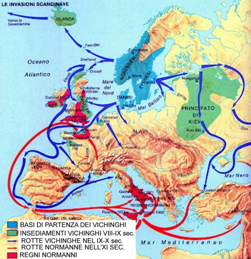 Fig.3 - I Vichinghi in Europa tra VIII e XI secolo.