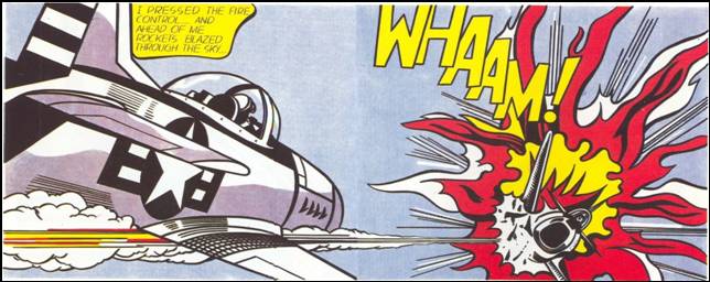 In Whaam! L'artista non si perde in complicati rimandi storici o morali sull'inutilità della guerra, ma punta ad un'astrazione artistica che si concentri sulla produzione sperimentale di una "simulazione espressiva" che, ormai slegata da ogni riferimento alla realtà colta nella sua essenza, si identifica nel linguaggio stesso da lui usato in questa rappresentazione.