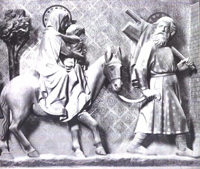 in questo bassorilievo della Fuga in Egitto sono la Madonna, seduta