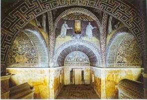 COMMITTENZA: Galla Placida (386-450 d.C.), sorella di Onorio, l'imperatore romano che trasferì nel 402 la capitale dell'impero d'occidente da Milano a Ravenna, fece costruire intorno al 425 - 450 questo piccolo Mausoleo, oggi famoso per lo splendore dei mosaici.