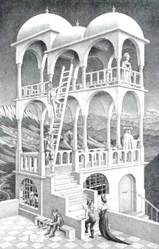 Paradosso a parte, Escher vide qui una metafora dell'assurdità della vita, non solo del '.Come è duro calle lo scendere e 'l salir per l'altrui scale.' (Paradiso, XVII, 59-60), ma anche di quanto tale affanno sia inutile, e non porti in realtà da alcuna parte