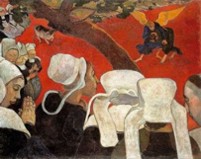 In questo dipinto prevale il giallo. Questo colore nel Medioevo era usato come il simbolo della malattia. Nell'immagine ci sono delle donne bretoni. Gauguin vuole risalire ad un mondo arcaico e riprende dal medioevo le linee nere che contornano, come le vetrate medioevali, le immagini. Esse hanno valore variabile. Questo recupero significa che la ricerca di nuovi mondi non era solo geografica ma anche temporale.