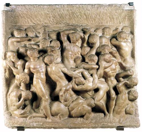 evidente richiamo alla giovanile Centauromachia, Michelangelo sviluppa le sue
