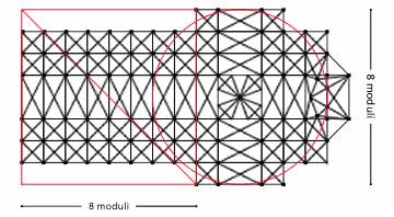 lo schema è a croce latina, i muri perimetrali con funzione portante, l'abside semiottagonale senza cappelle radiali, il tiburio.