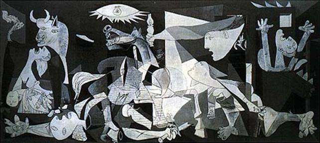 Picasso decise di realizzare un quadro che riproponesse questo efferato crimine contro l' umanità, per denunciare, all' esposizione mondiale di Parigi del '37, l' atrocità di tale bombardamento.