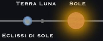 Le eclissi solari allora avvengono quando la luna, in fase di luna nuova, viene a trovarsi fra la terra ed il sole , esattamente lungo la retta che congiunge la nostra visuale con il centro del sole (linea dei nodi), ed in prossimità del punto chiamato nodo. Praticamente in caso la terra attraversa i coni d'ombra e di penombra, provocati dalla luna, rimanendone oscurata, mentre dalla superficie terrestre il disco lunare ci apparirà transitare davanti a quello solare toccandolo apparentemente e creando quelle fasi che descrivono ogni eclisse ossia il primo contatto, il secondo contatto, la fase di totalità, il terzo contatto ed infine l'ultimo contatto. Inoltre il disco lunare, a causa della distanza dal sole, è uguale apparentemente a quello solare, così che esso lo copre totalmente o parzialmente a seconda della posizione.