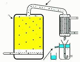Schema del processo di distillazione in corrente di vapore (steam distillation)