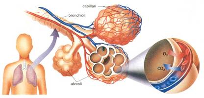 Gli alveoli, ricchi di capillari, sono la sede di scambio tra O2 e CO2