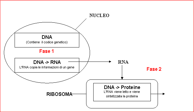 L' RNA esce dal nucleo e si porta sui ribosomi dove viene " letto " il codice genetico e costituisce