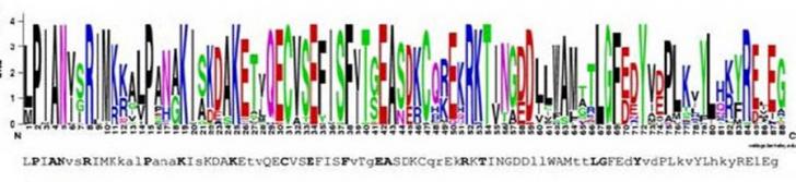 Il consenso "logos" è stato creato dal confronto di 13 sequenze di riso, 10 di Arabidopsis e 1 di grano. Le sequenze di riso e Arabidopsis sono membri non ridondanti di RisoTFDB e ArabTFDB. L'altezza delle lettere indica la frequenza relativa del corrispondente residuo. Sotto il "logos" c'è una rappresentazione testuale dei maggiore consenso tra le tre specie. Gli amminoacidi sono colorati in accordo con le proprietà chimiche: verdi per for polar (G,S,T,Y,C,Q,N), blu per i basici (K,R,H), rossi per gli acidi D,E) e nero per idrofobici (A,V,L,I,P,W,F,M).