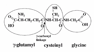 Il glutatione è un tripeptide ubiquitario presente in molte piante, microrganismi e in tutti i tessuti dei mammiferi. Composto da acido glutammico, cisteina e glicina (γ-glutamilcisteinilglicina), presenta la particolare caratteristica di avere i residui di acido glutammico e di cisteina uniti non da un normale legame peptidico, ma da un legame γ-glutammilico: è infatti il gruppo carbossilico (-COOH) sul carbonio γ dell'acido glutammico ad essere legato al gruppo amminico (-NH2)