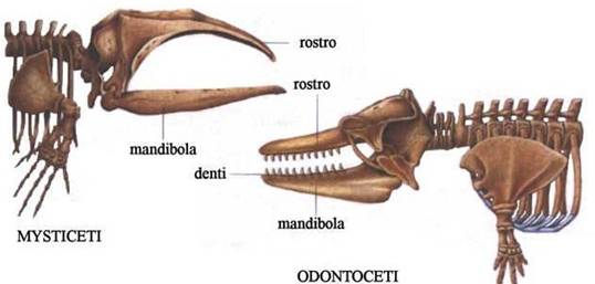 Fig. : Differenze nel cranio di Mysticeti ed Odontoceti.