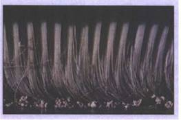 mentre nei Misticeti sono stati sostituiti dai fanoni (fig. 3 , lamine cornee triangolari, con il lato interno sfrangiato in setole, impiantate in serie lungo il margine della mascella superiore.