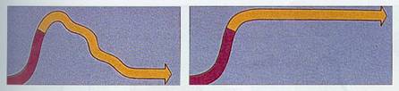 tratto quella teorica, assumendo un andamento a "S"; ad un certo punto le
