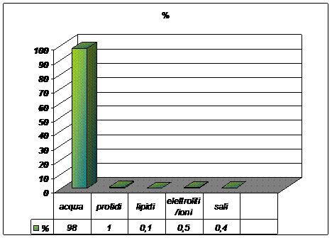 tuttavia, la saliva è al 98% costituita da acqua, nella quale sono disciolte