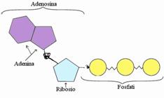 una base azotata (l'adenina), dal ribosio ( uno zucchero a cinque atomi di