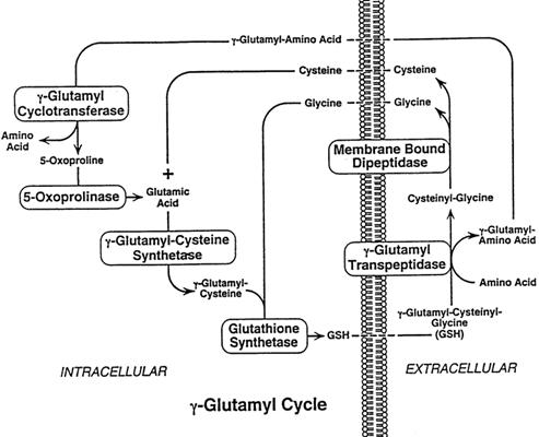 Attraverso il ciclo del γ-glutammile la GGT gioca un ruolo importante per il trasporto transmembrana degli amminoacidi che compongono il glutatione fra cui la cys, fondamentale per la sintesi proteica; in casi di deficit enzimatico, tuttavia, non sono stati riscontrati particolari problemi di trasporto di tali amminoacidi. Un'ulteriore conferma del legame molto stretto fra glutatione e GGT si è avuta osservando che, se veniva inibita la produzione di glutatione nei topi attraverso dietilmaleato, la concentrazione di GGT-mRNA aumentava significativamente negli epatociti e così pure la concentrazione sierica dell'enzima (Moriya et al., 1994).