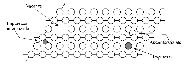se manca un atomo in un sito del reticolo, vi è una lacuna; un atomo fuori posto è chiamato autointerstiziale;