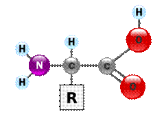 Gli amminoacidi sono composti azotati costituiti da un carbonio centrale a cui sono legati 3 gruppi di atomi (costanti, comuni a tutti gli amminoacidi) ed un gruppo variabile R che caratterizza ogni singolo amminoacido: