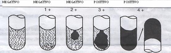 Positività della prova: il test viene considerato positivo quando il contenuto della provetta per due terzi coagulato