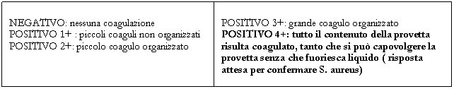 La formazione di piccoli coaguli visibili ad occhio nudo indica la positività della prova. Tale test mette in evidenza il cosiddetto clumping factor ( detta anche coagulasi legata) e non la coagulasi libera del test in provetta. Esso pertanto può servire come screening orientativo e deve essere confermato dal test in provetta.