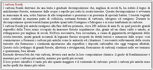 Questo processo di fossilizzazione, che coinvolge soprattutto i vegetali, ha dato origine ai giacimenti di carbon fossile.