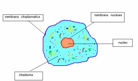 la membrana citoplasmatica, il citoplasma, la membrana nucleare e il nucleo.