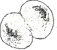 Quando la cellula comincia a dividersi, si nota che il nucleo è formato da tanti piccoli bastoncelli strutture filamentose ancora indistinte che rappresentano i cromosomi.